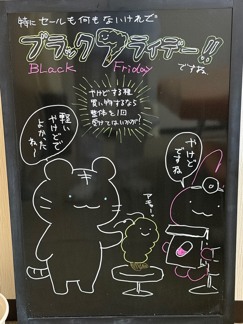 お知らせ毎週月曜日に院の前においてある黒看板を描き直しています。