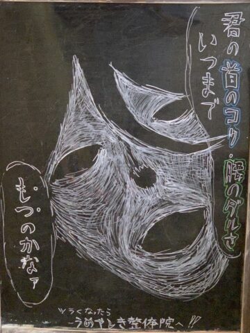 毎週看板描いてます、バチボコ辛い症状にどうぞ|梅屋敷の整体・カイロプラクティックなら、うめやしき整体院
