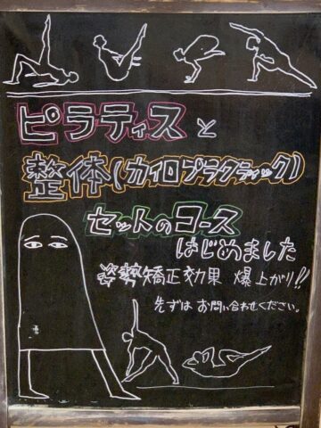 毎週看板描いてます、ピラティスと整体のセット大好評!|梅屋敷の整体・カイロプラクティックなら、うめやしき整体院