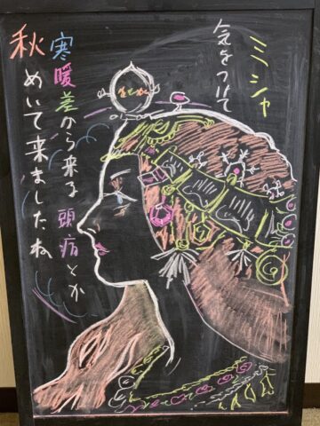 毎週看板描いてます、秋めいてきましたミシャ|梅屋敷の整体・カイロプラクティックなら、うめやしき整体院