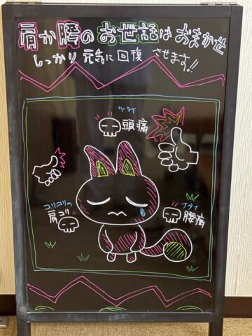 毎週看板描いてます、身体のお世話致します。|梅屋敷の整体・カイロプラクティックなら、うめやしき整体院