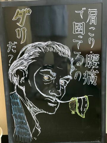 毎週看板描いてます、身体カチカチになったのダリだ?|梅屋敷の整体・カイロプラクティックなら、うめやしき整体院