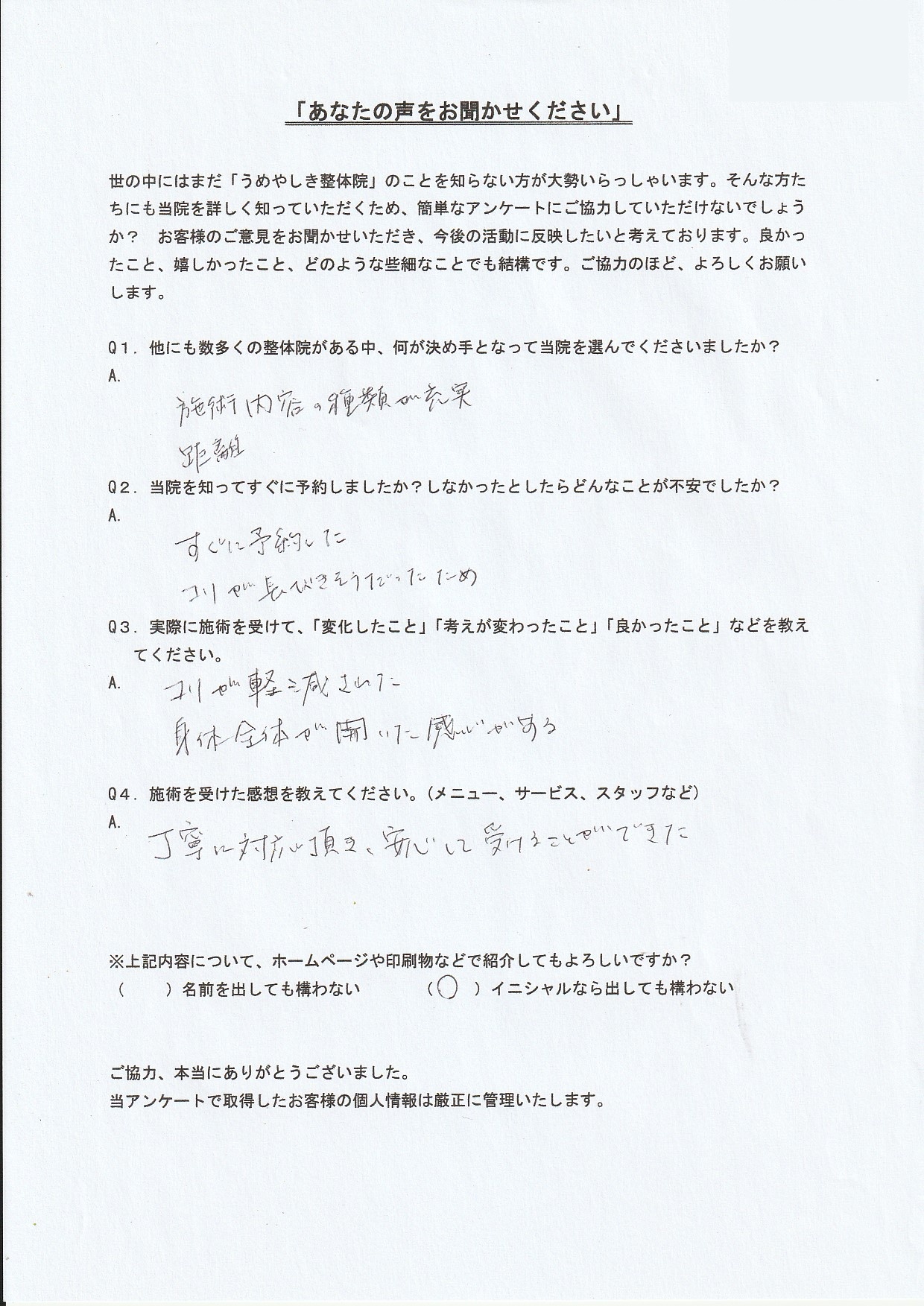 他にも数多くの整体院がある中、何が決め手となって当院を選んでくださいましたか?