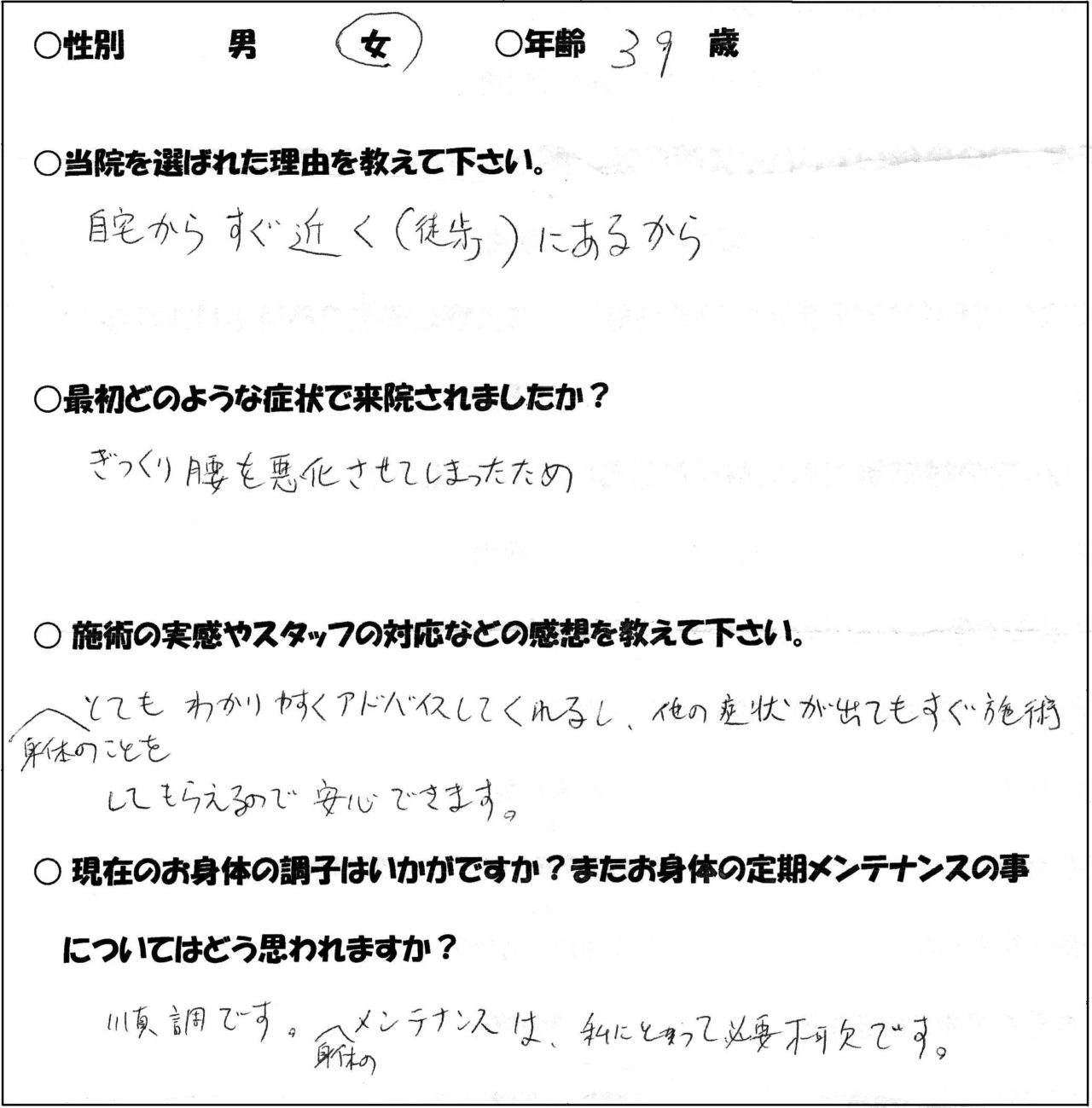 女性 39歳 ぎっくり腰|梅屋敷の整体・カイロプラクティックなら、うめやしき整体院