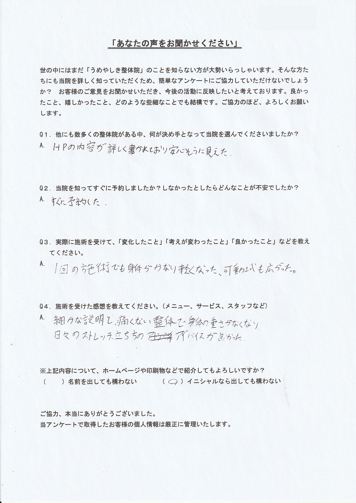 他にも数多くの整体院がある中、何が決め手となって当院を選んでくださいましたか?